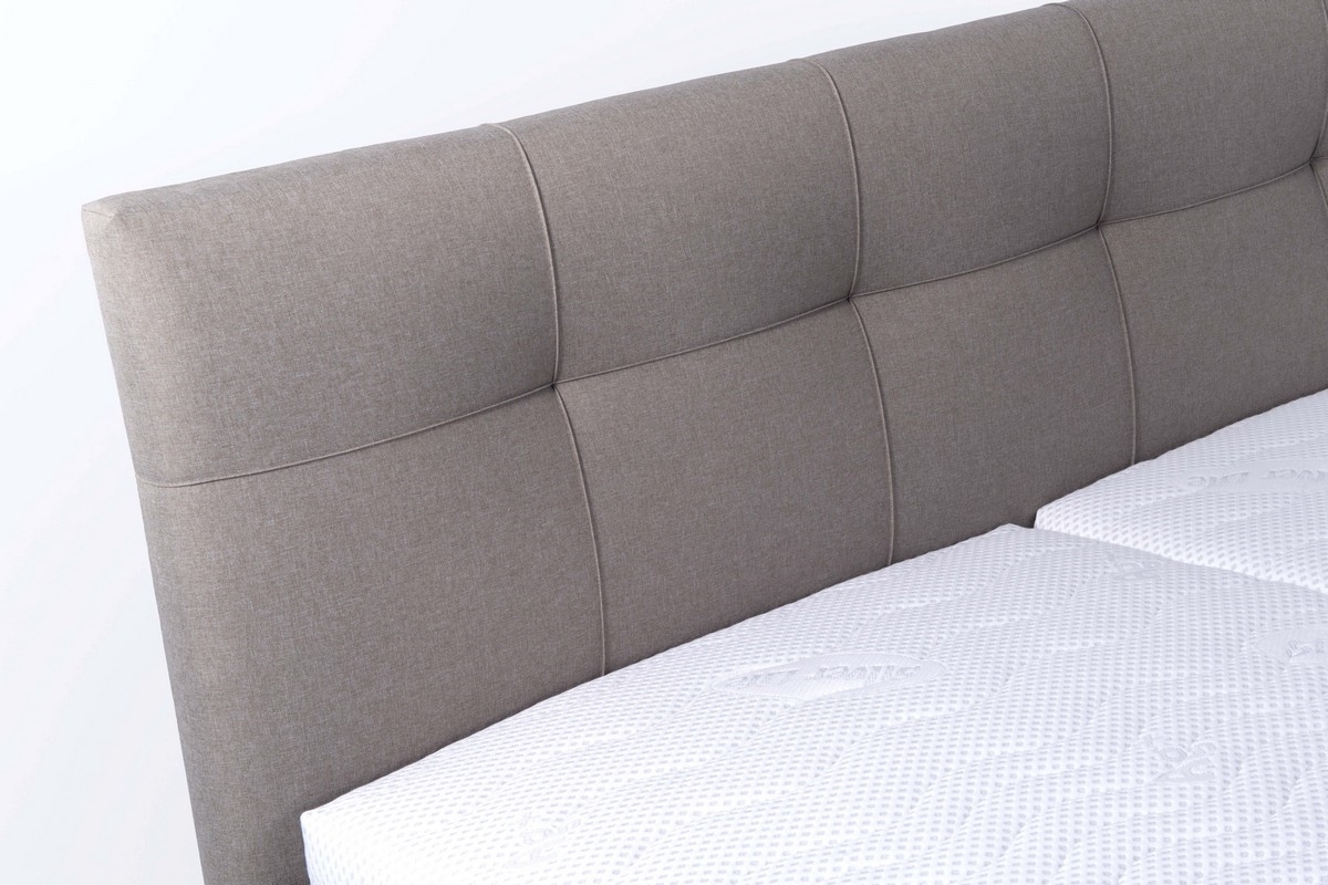 • Čalouněná dvoulůžková postel s volně loženými matracemi se pyšní detailně propracovaným, elegantně prošitým čelem.