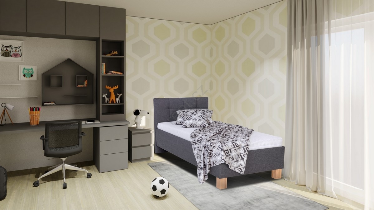 • Čalouněná postel s matrací a úložným prostorem MARIA ONE 90x200 cm šedá