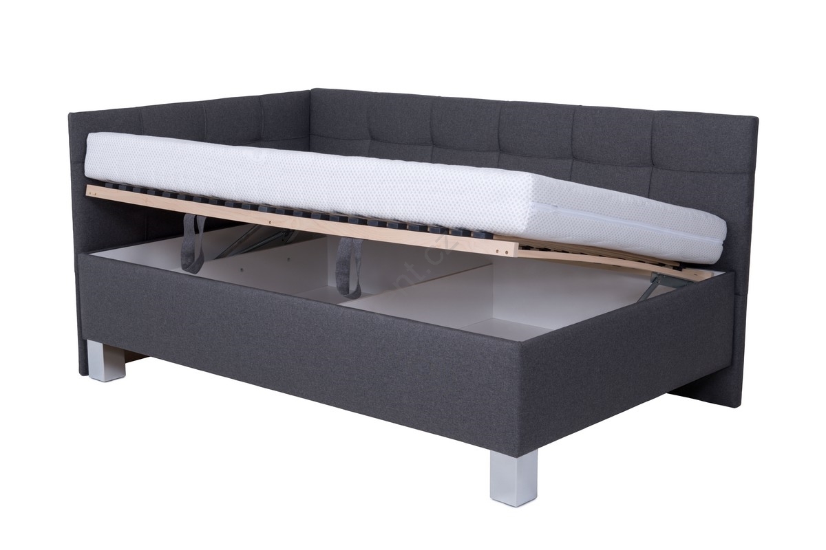 • Postel je vybavena výklopným systém z boční části pro snadný přístup k prostornému úložnému prostoru, který je navíc vybaven větracími mřížkami pro lepší cirkulaci vzduchu.