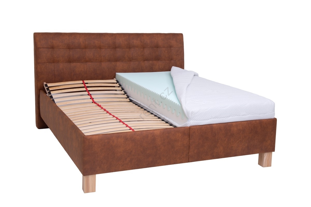 • Čalouněná postel s matrací a úložným prostorem VIOLET 180x200 cm koňaková hnědá