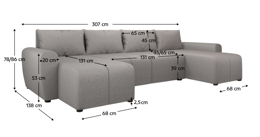 • Stylové černé nožky decentně doplňují celek a dodávají rohové sedací soupravě lehkost a moderní charakter.
