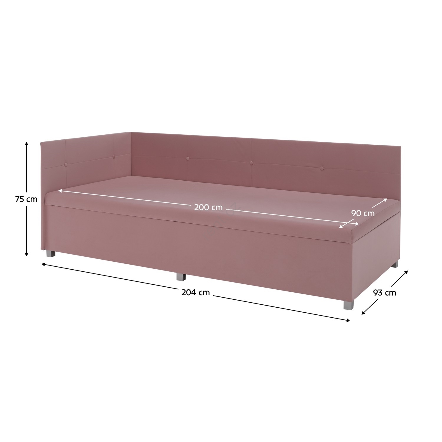 Čalouněná válenda s univerzálním čelem a úložným prostorem AMSTERDAM 90x200 cm růžová