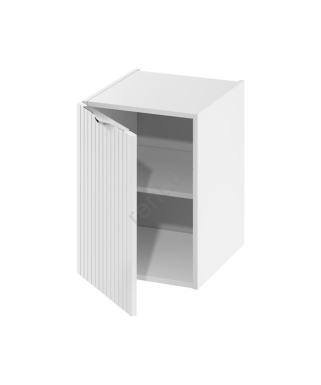 • Čelo, korpus a vnitřní poličky skříňky jsou vyrobeny z 16mm dřevotřísky s bílým lakem.