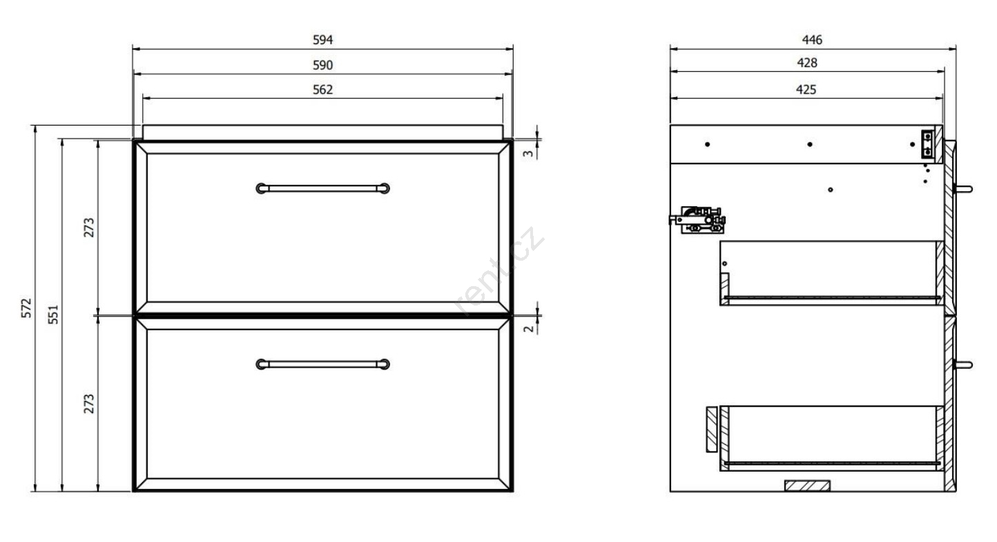 • Skříňka má dvě prostorné zásuvky s tlumením dovírání.