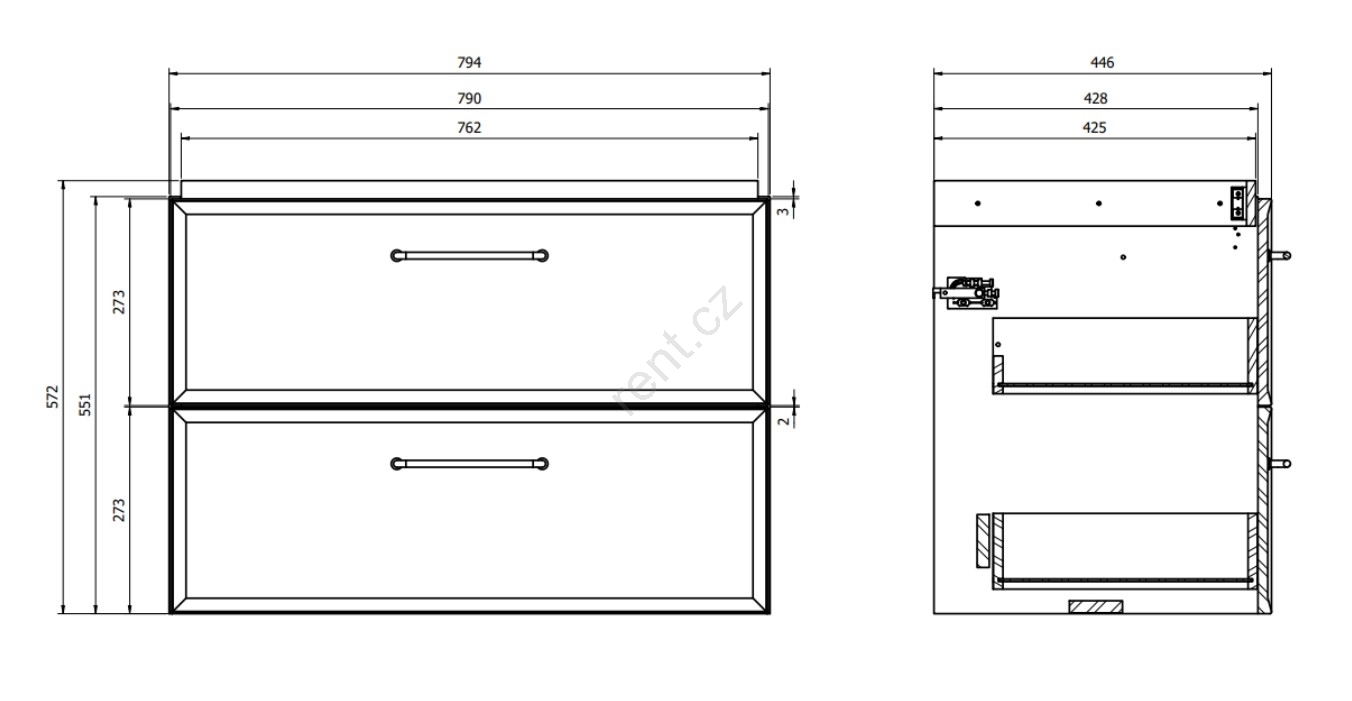 • Skříňka má dvě prostorné zásuvky s tlumením dovírání.
