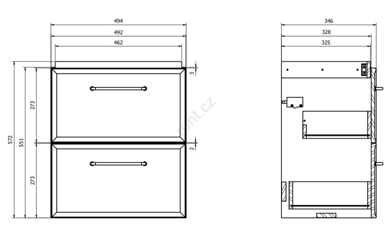 • Skříňka má dvě prostorné zásuvky s tlumením dovírání - soft close.