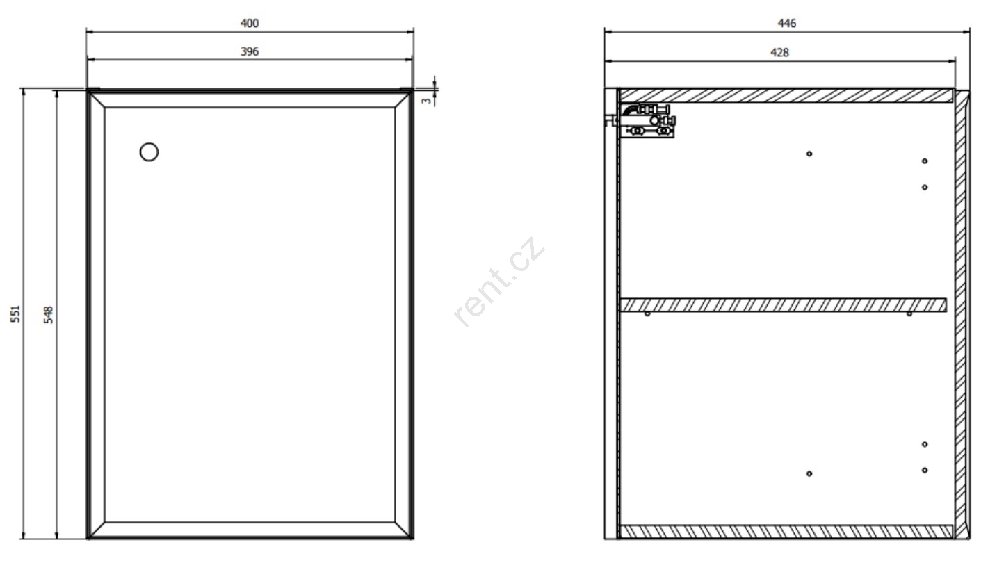 • Prostorná závěsná skříňka.