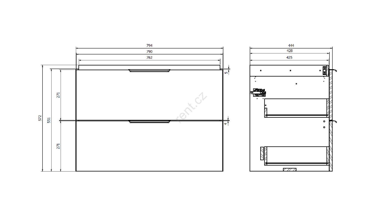 • Skříňka má dvě prostorné zásuvky s tlumením dovírání.