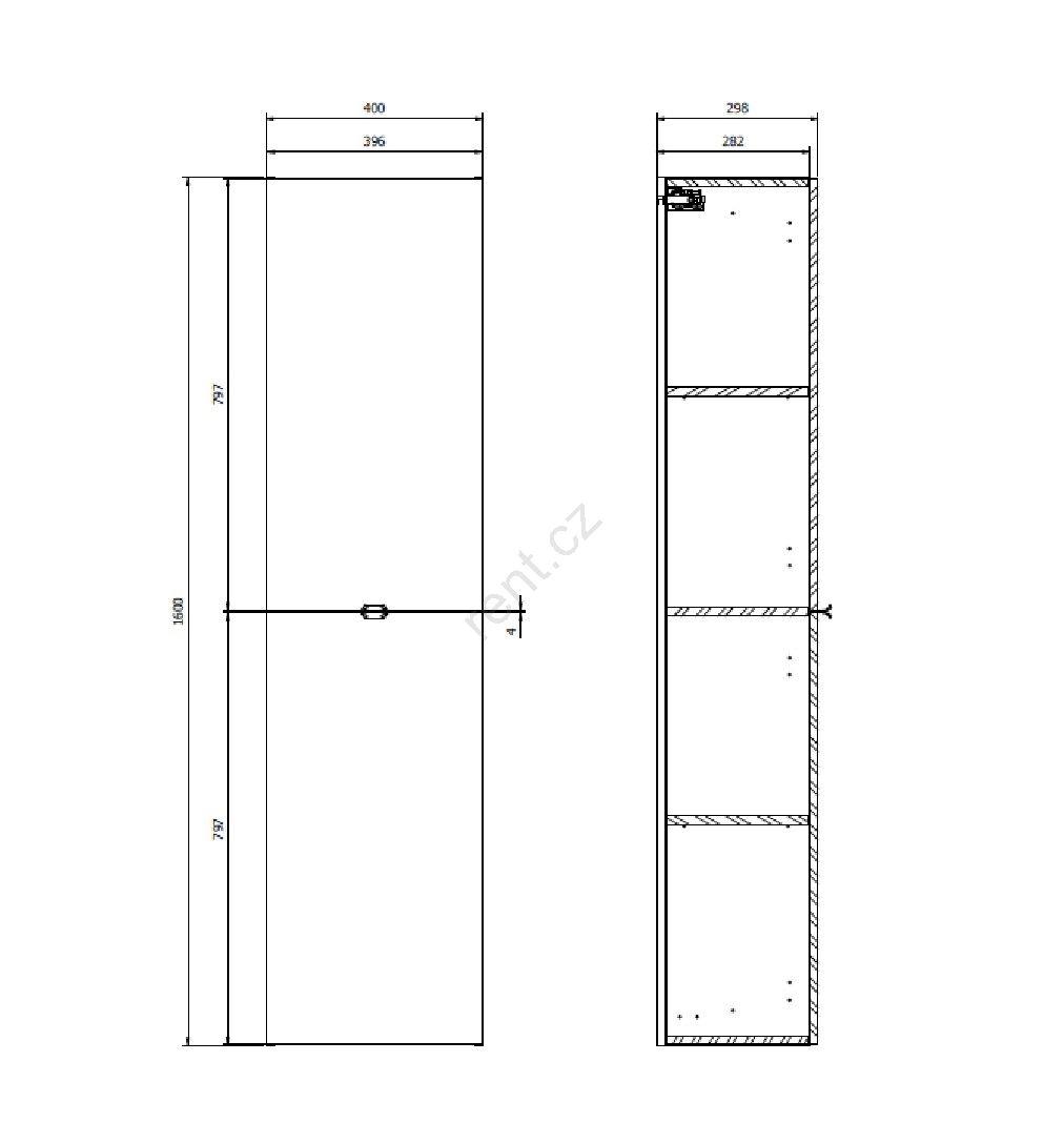 • Čelo, korpus a vnitřní poličky skříňky jsou vyrobeny z 16mm dřevotřísky.