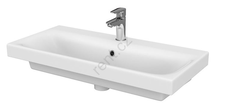 • Keramické umyvadlo má klasický obdélníkový tvar s otvorem pro baterii a přepadem.