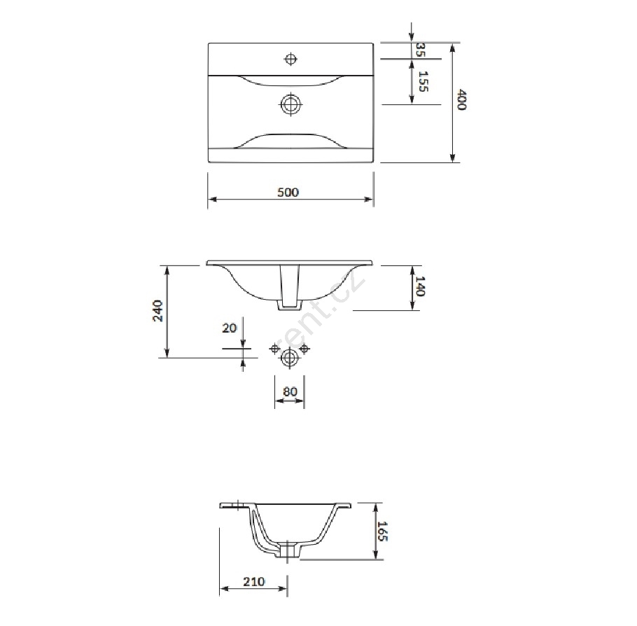• Umyvadlová baterie není součástí balení.