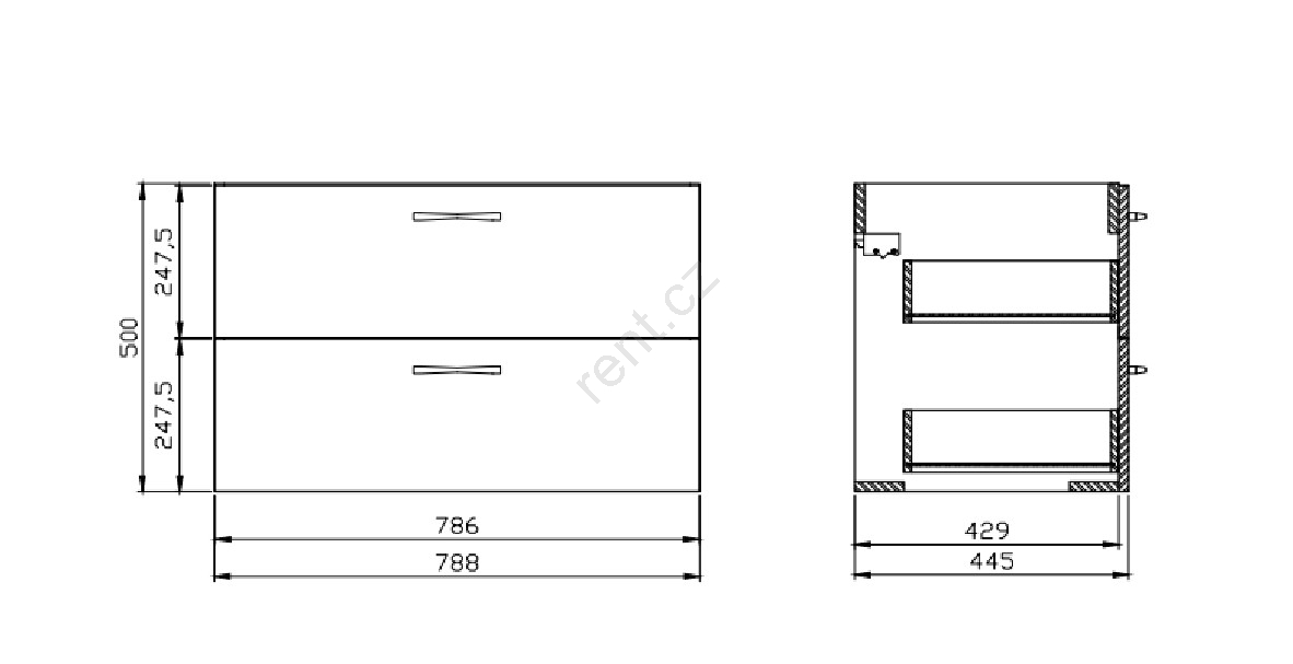 • Skříňka má dvě prostorné zásuvky s tlumením dovírání.