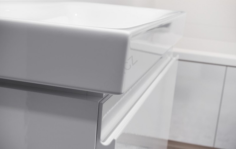 • Čelo a korpus skříňky jsou vyrobeny z 16mm dřevotřísky s lesklým bílým lakem.