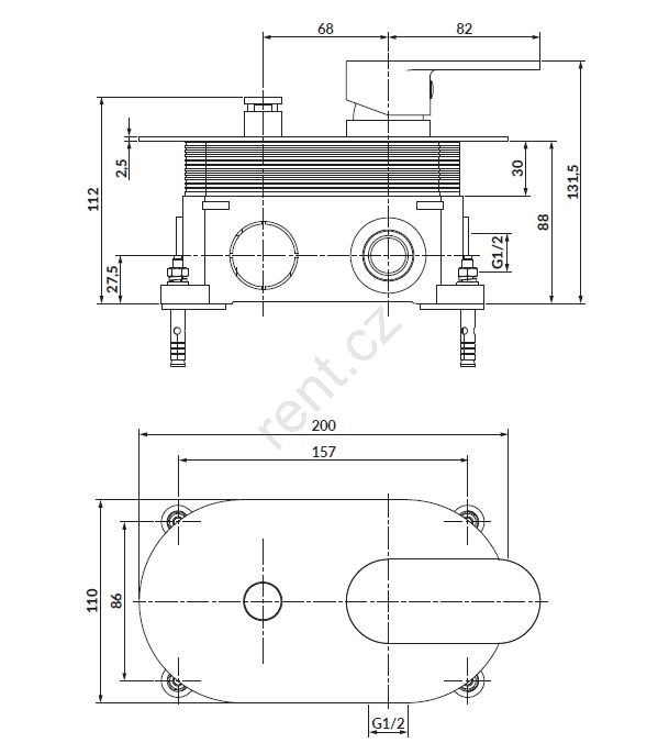 • Jednopáková sprchová baterie pro podomítkovou instalaci.