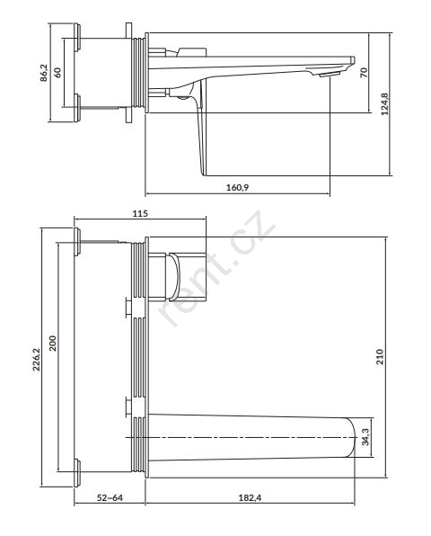 • Nástěnná umyvadlová baterie pro podomítkovou instalaci.