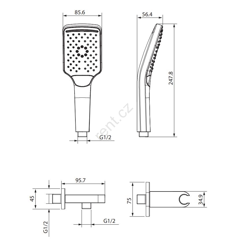 • Ruční sprcha se 3 funkcemi.