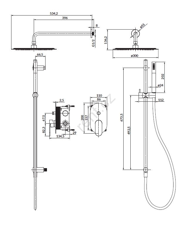 • nerezovou sprchovou hlavici SLIM (0,2 cm) s dešťovou sprchou o průměru 25 cm,