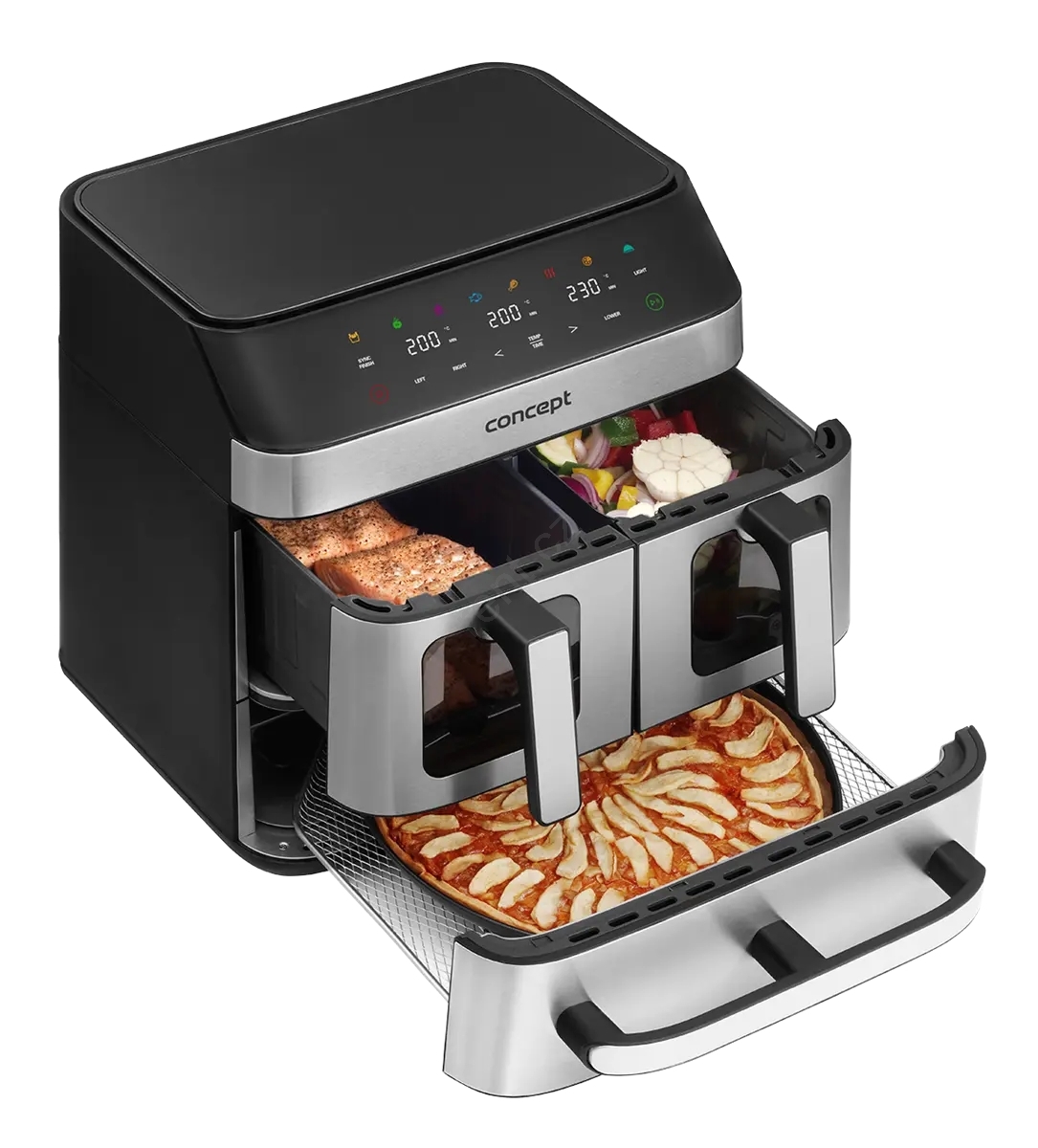 Concept FR9000 - Horkovzdušná fritéza PIZZA TRIO 18,5 l 2700W/230V nerez/černá