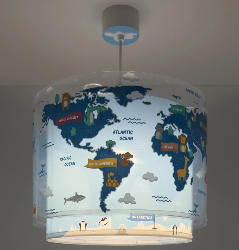• Dalber 40672 - Dětský lustr WORLD 1xE27/15W/230V modrá