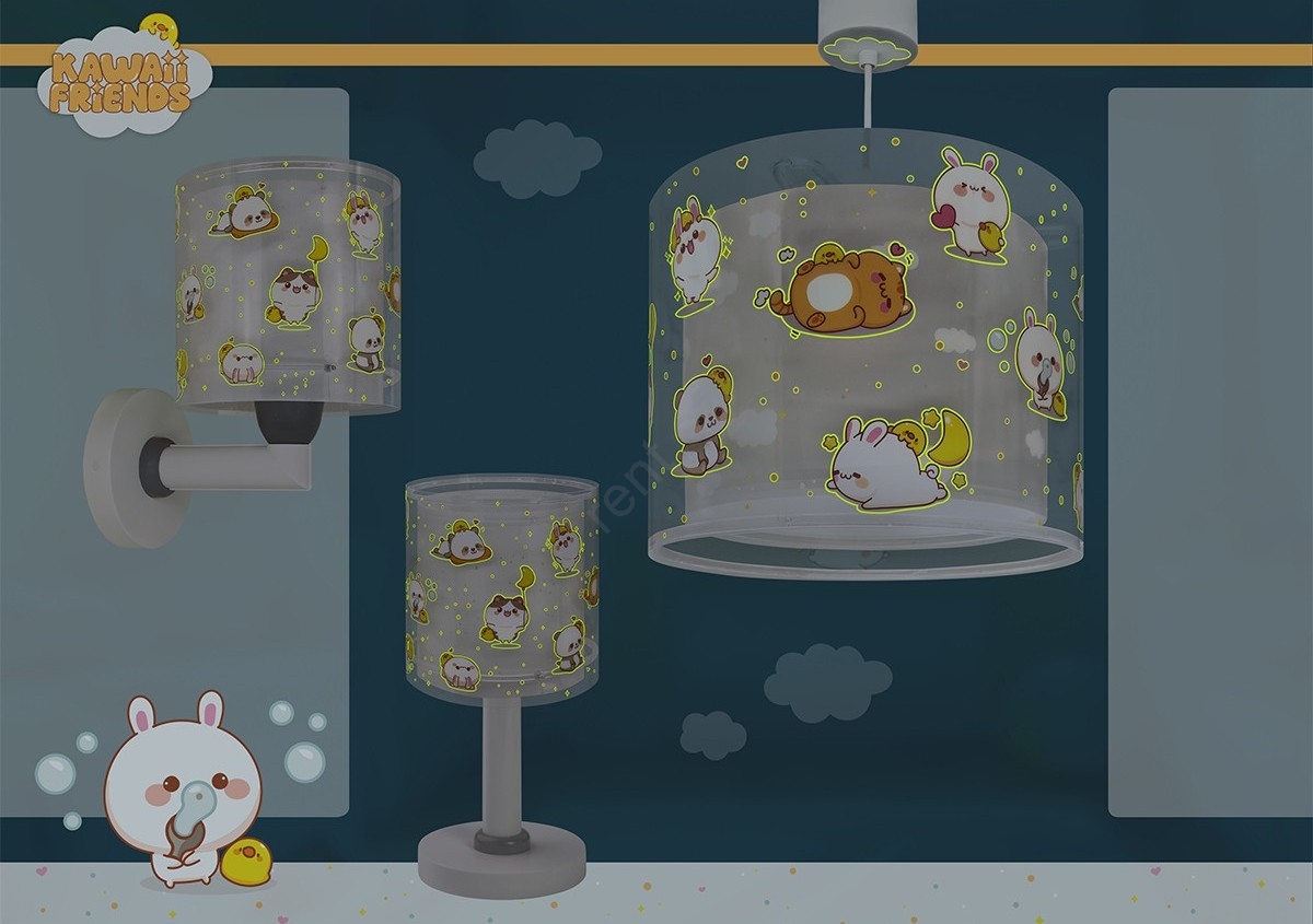 • Dalber 41762E - Dětský lustr KAWAII FRIENDS 1xE27/15W/230V šedá