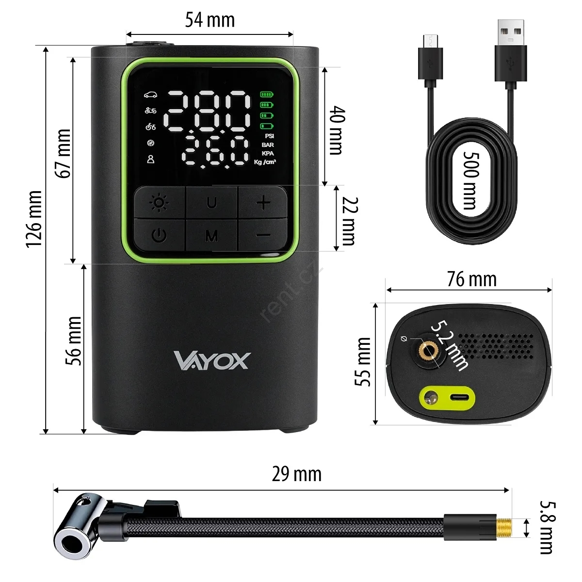 Digitální kapesní kompresor 5V 4000 mAh černá