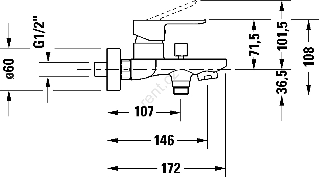 • Nástěnná páková vanová baterie je určena pro montáž na stěnu.