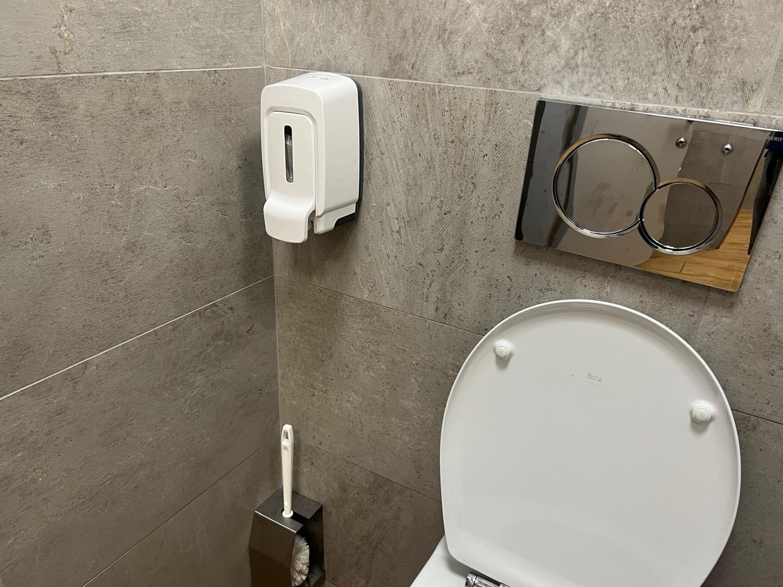 • Malý úsporný pěnový dávkovač dezinfekce na toaletní prkénka.