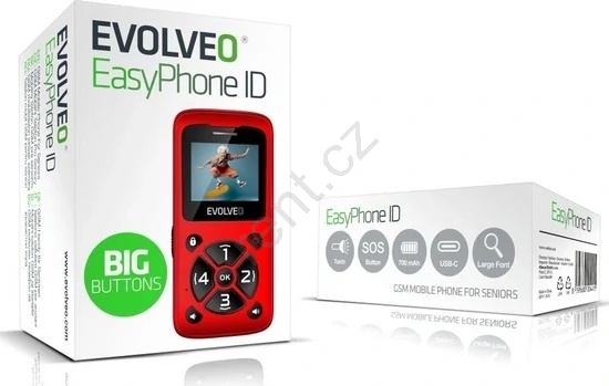 Evolveo - EasyPhone ID, mobilní telefon pro seniory, červená