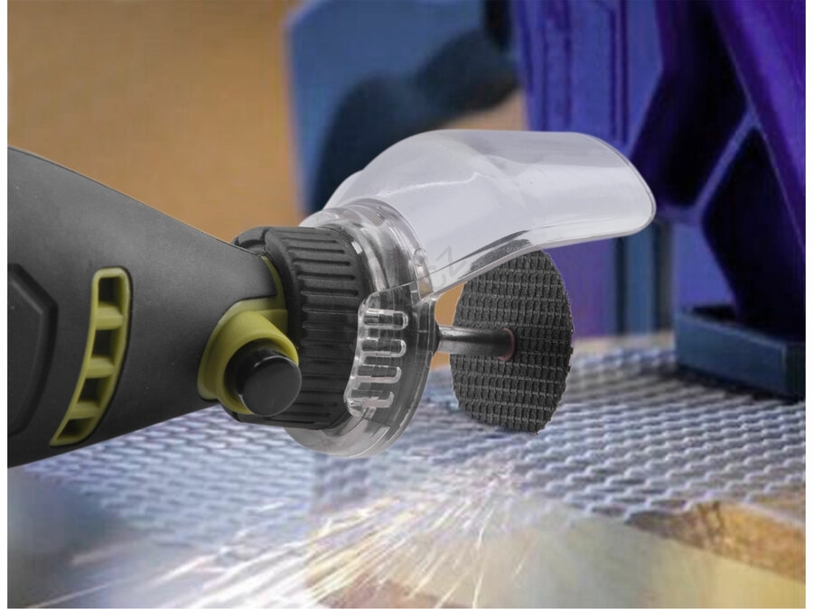 • Ve výbavě je také ohebný nástavec, který umožňuje vést lehký koncový hrot jako tužku, zatímco bruska zůstává mimo pracovní prostor.