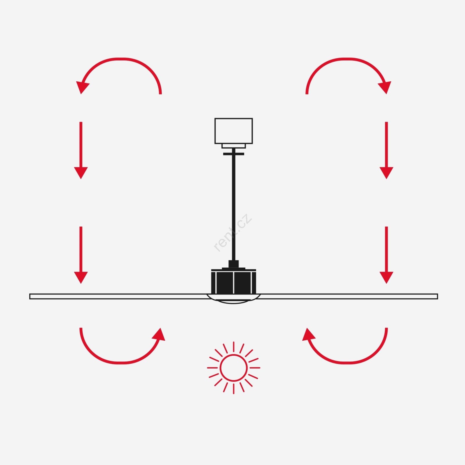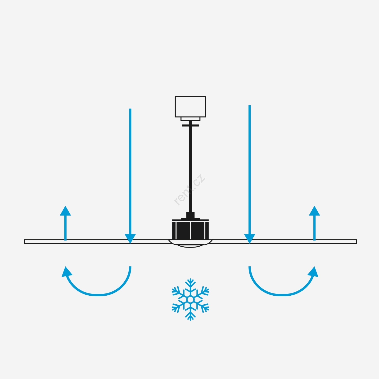 • Tento ventilátor má funkci zpětného chodu léto-zima, tudíž jej můžete používat i v zimě (úspora nákladů na topení v zimě až 20 %).