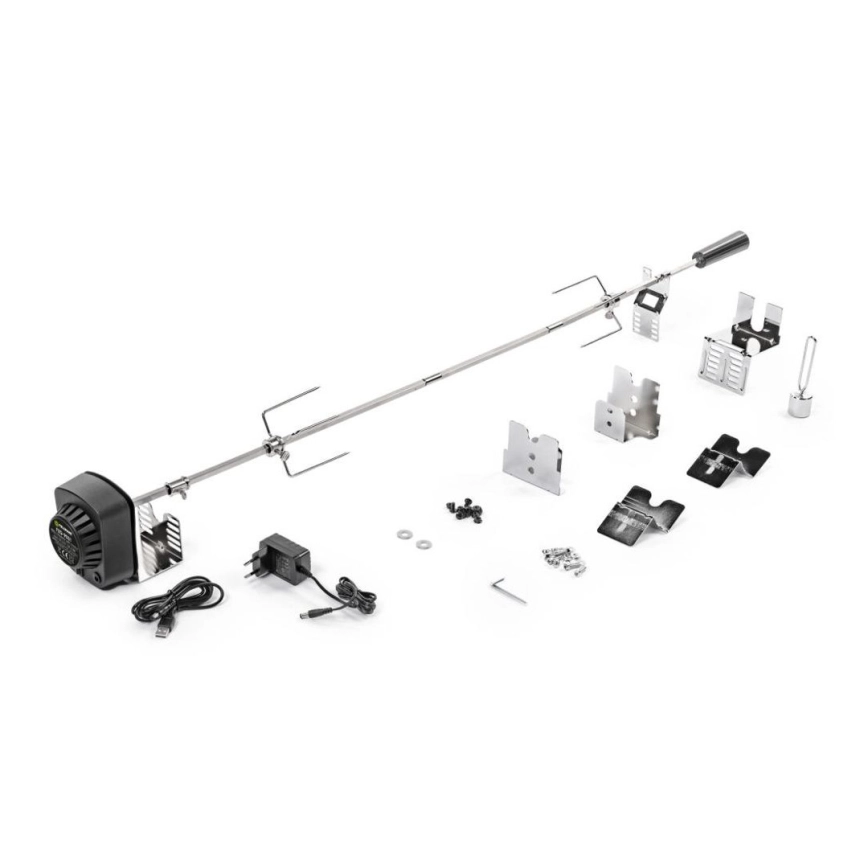 • Šikovná neezová grilovací jehla s elektrickým motorem zajistí rovnoměrné otáčení masa.