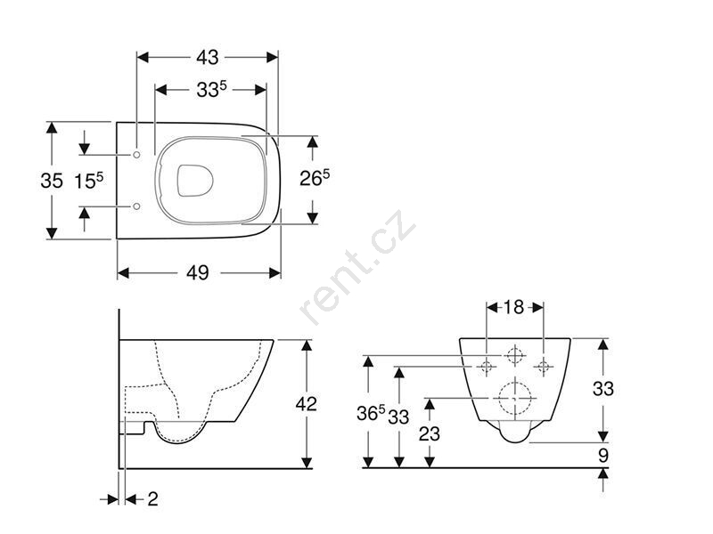 • Závěsný klozet s uzavřeným tvarem a zkráceným vyložením.