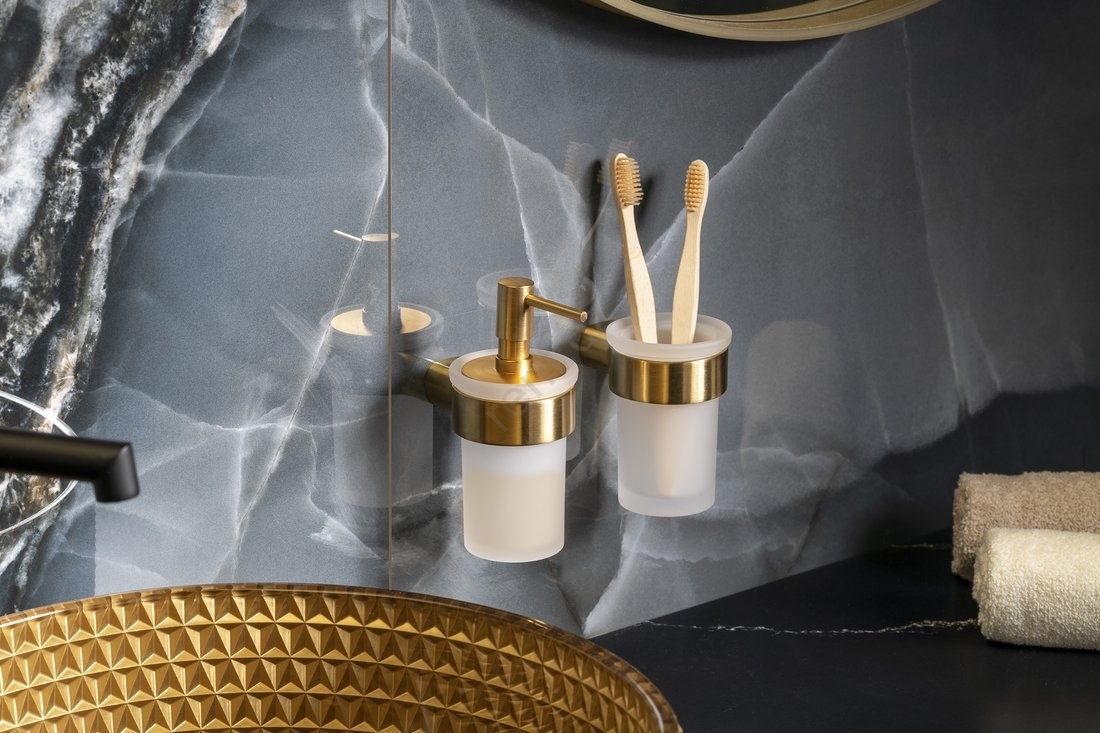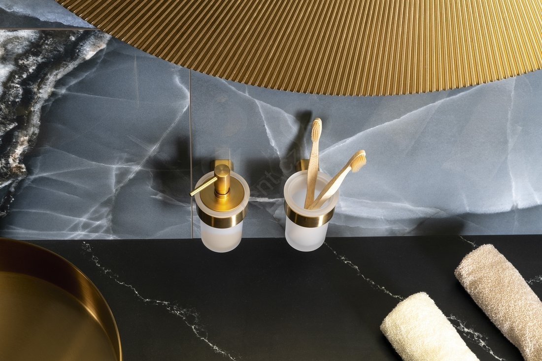 Gedy - Nástěnný stojánek na zubní kartáčky PIRENEI mléčné sklo/matná zlatá