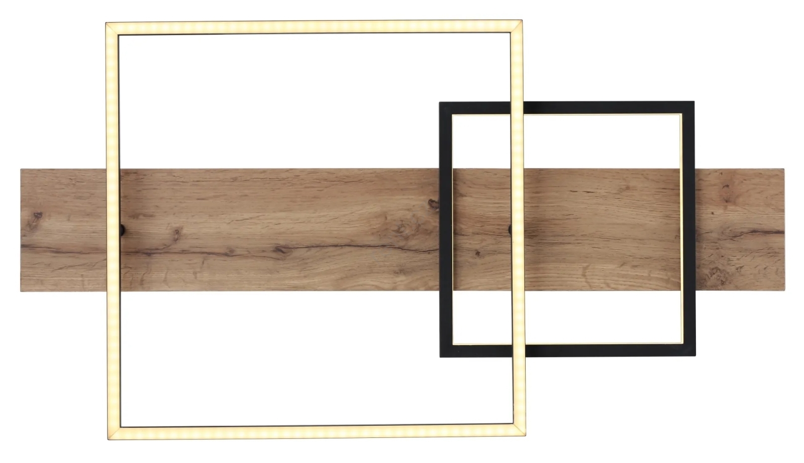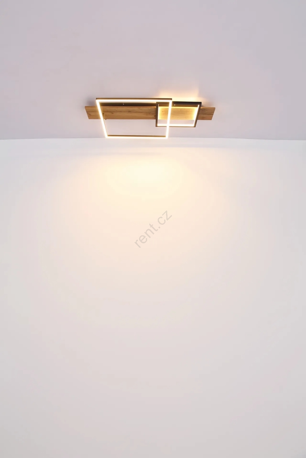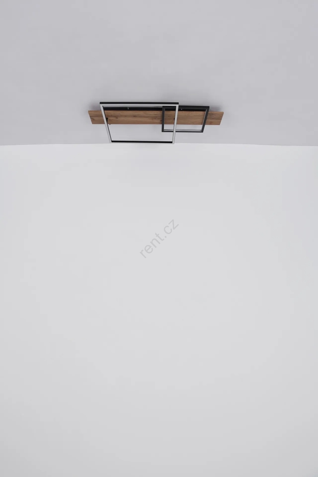 • Stropní svítidlo kombinuje matně černý kov, MDF s dekorem dřeva, černý hliník a opálový plast, díky čemuž působí moderně a elegantně.