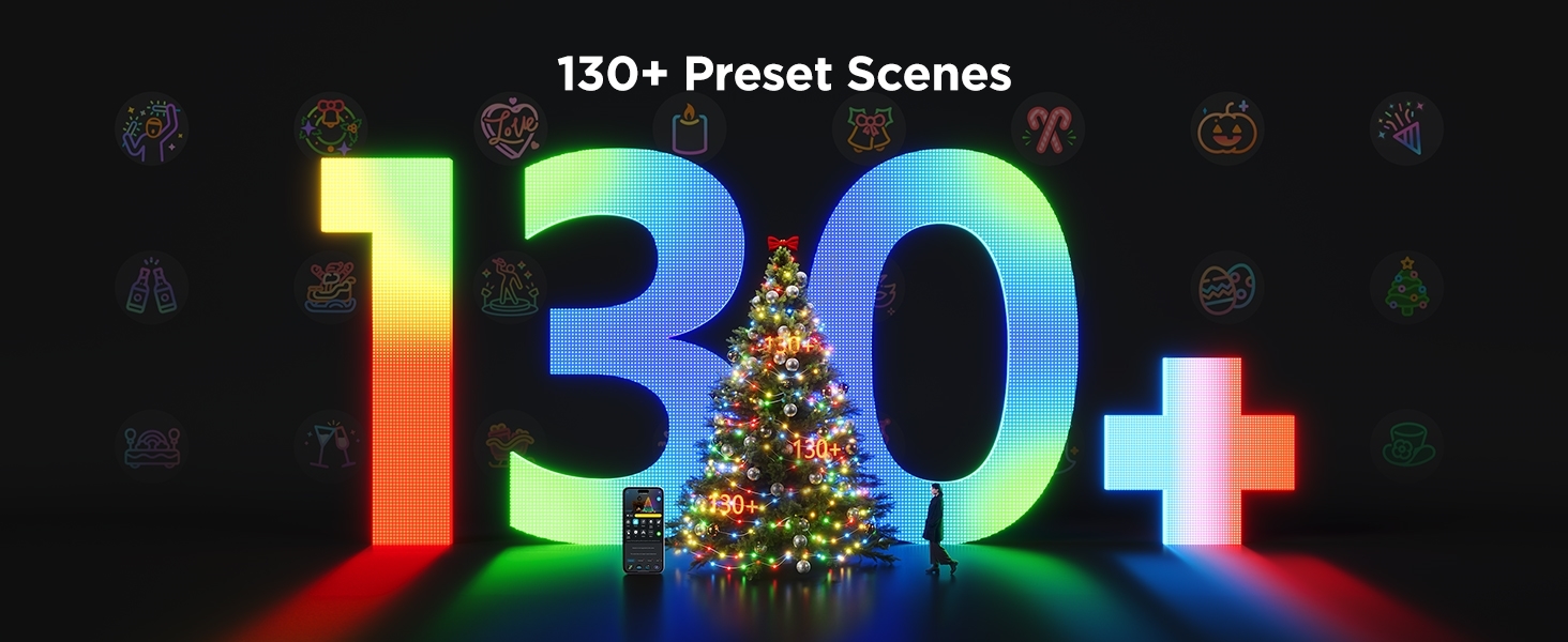 Govee - LED RGBICW Venkovní vánoční řetěz 2700-6500K 20m Wi-Fi Matter IP66