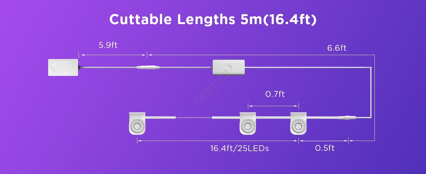 • Řetěz 25 nezávisle programovatelných LED světel, rozložených na délku 5 metrů vytvoří z nudné stěny umělecké dílo velkoplošné RGB projekce.