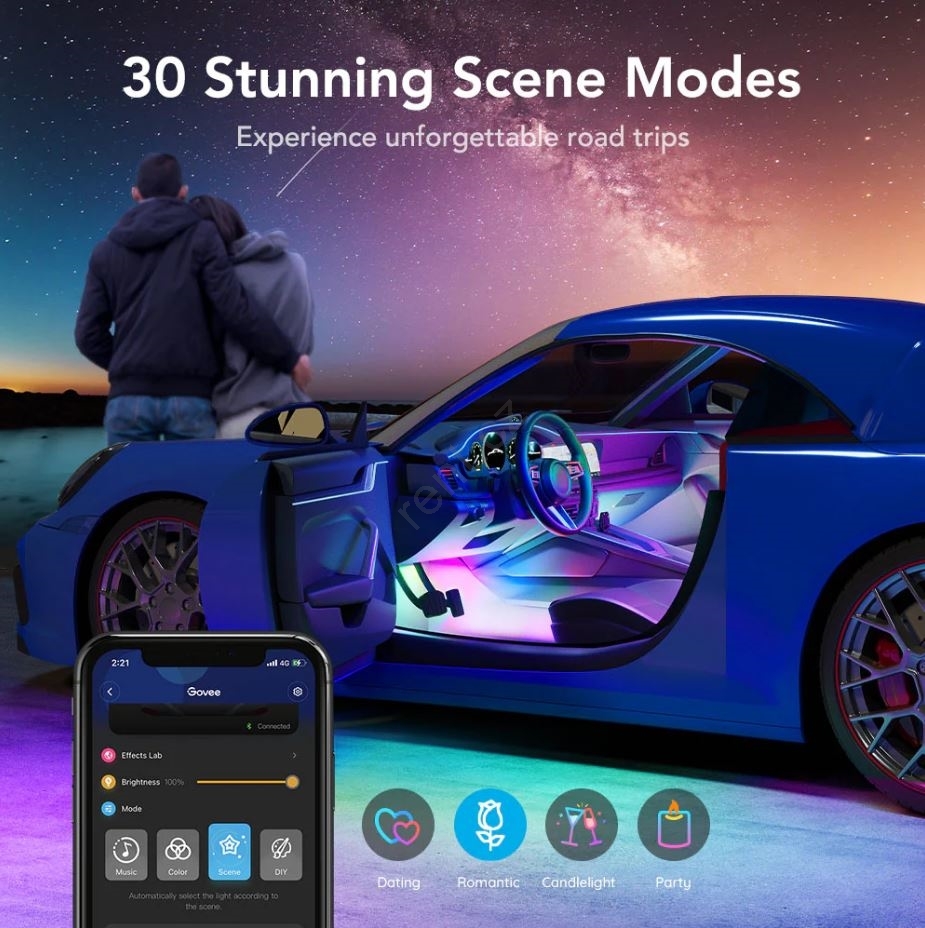 • Úsporné interiérové chytré LED pásky Govee Smart RGBIC do auta vylepší interiér vašeho automobilu a poskytnou zážitek, který se naskytuje u luxusních vozů.