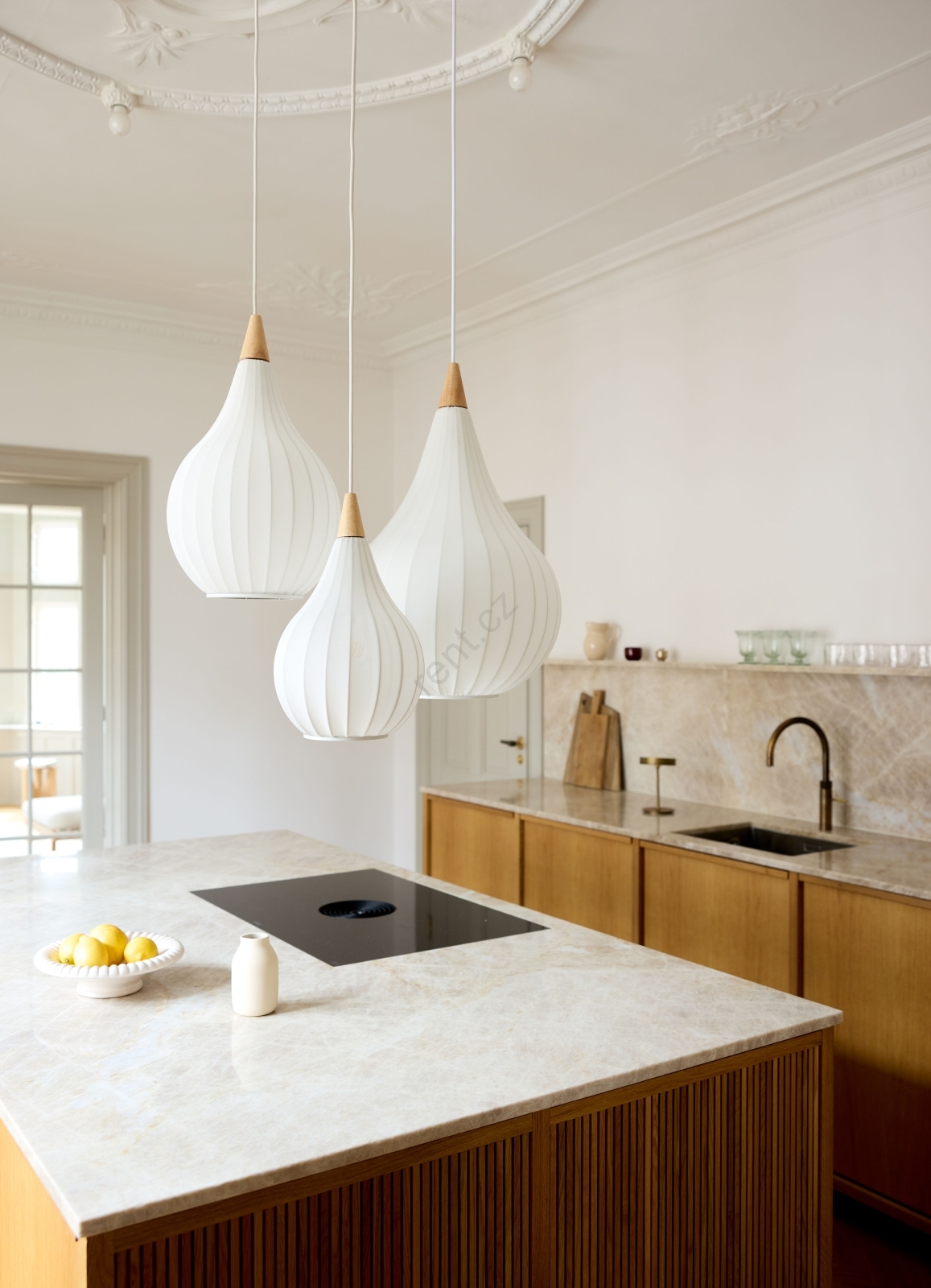 Halo Design 746262 - Lustr na lanku DROPS 1xE27/40W/230V pr. 30 cm bílá/dub charakterizuje pěkný design a funkční provedení.  Do svítidla je určena žárovka s paticí E27. Zde si můžete koupit další žárovky za výhodnou cenu. Získáte tak zajímavý doplněk do svého domova.
