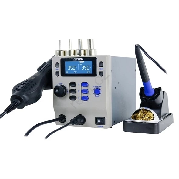 • Profesionální servisní stanice kombinující horkovzdušnou a pájecí jednotku v jednom přístroji.