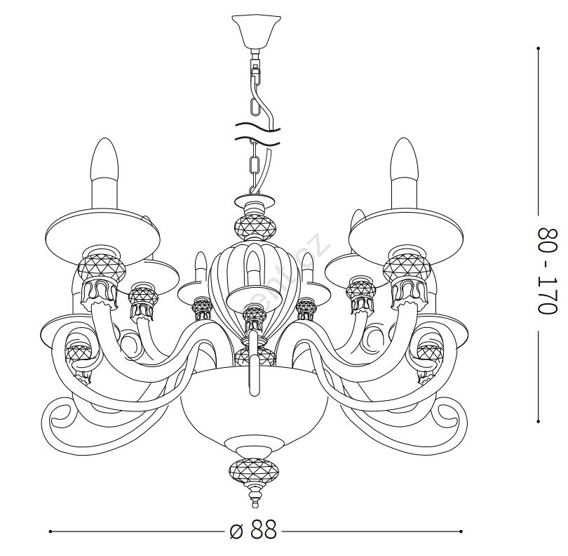 Ideal Lux - Lustr na řetězu BARONET 15xE14/40W/230V pr. 88 cm červená charakterizuje pěkný design a funkční provedení.  Do svítidla je určena žárovka s paticí E14. Zde si můžete koupit další žárovky za výhodnou cenu. Získáte tak zajímavý doplněk do svého domova.