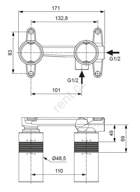• Je určen pro skrytou instalaci a je vybaven připojovacím závitem G1/2.