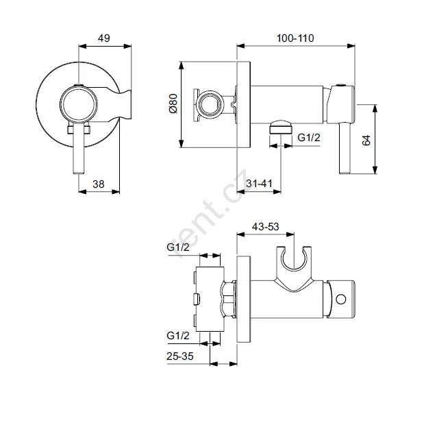 • Vnější výstup pro smíšenou vodu je proveden ve velikosti G 1/2.