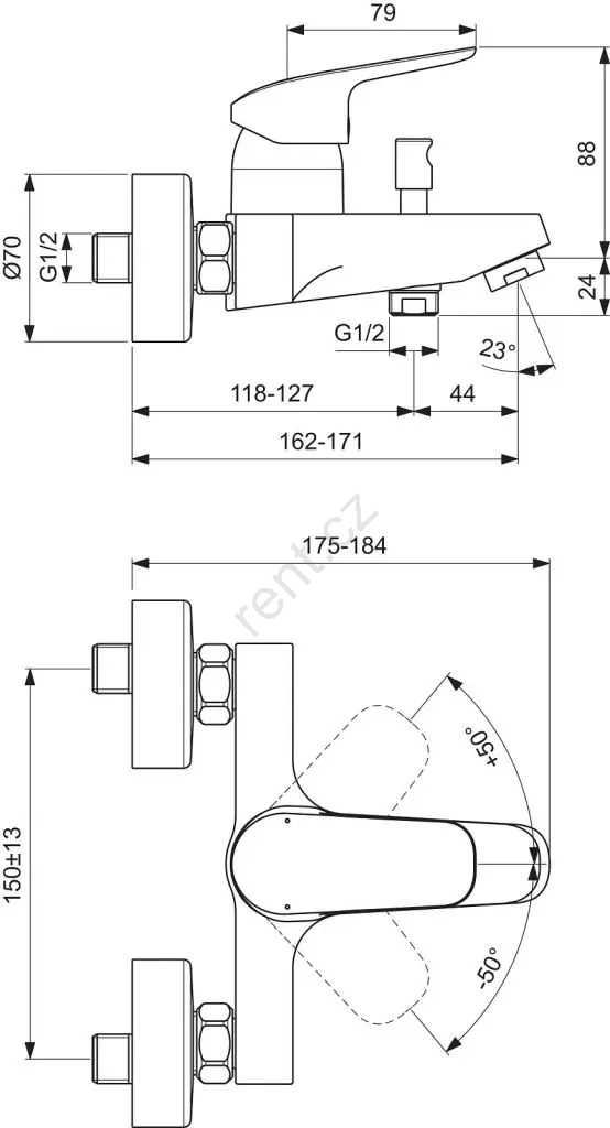 • Páková vanová baterie Ideal Standard CeraFlex je určena pro nástěnnou montáž a má elegantní chromovou povrchovou úpravu.
