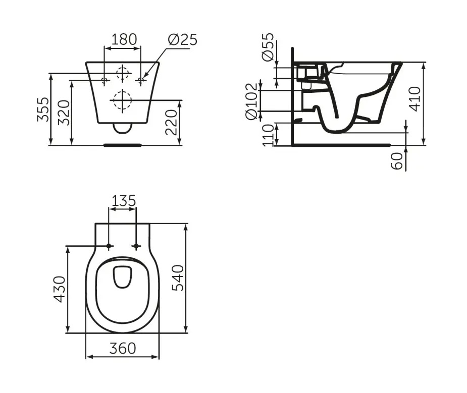 • Klozet je dodáván včetně montážní sady.