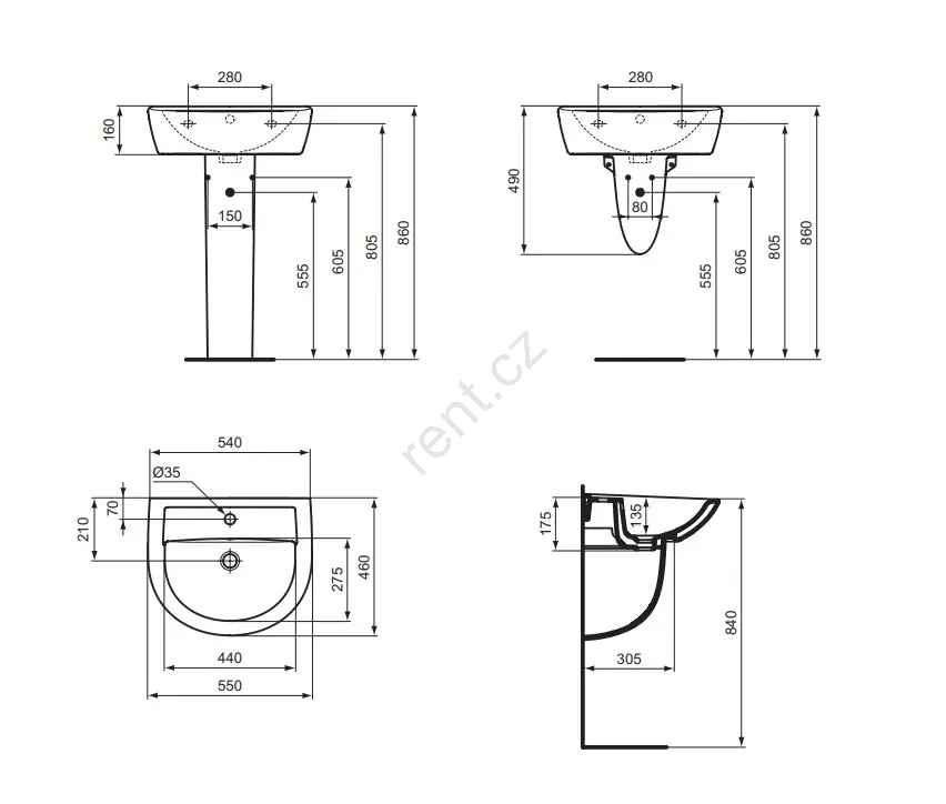 • Montuje se přímo na zeď a lze jej kombinovat se sloupem nebo polosloupem, čímž docílíte elegantního a čistého vzhledu koupelny.