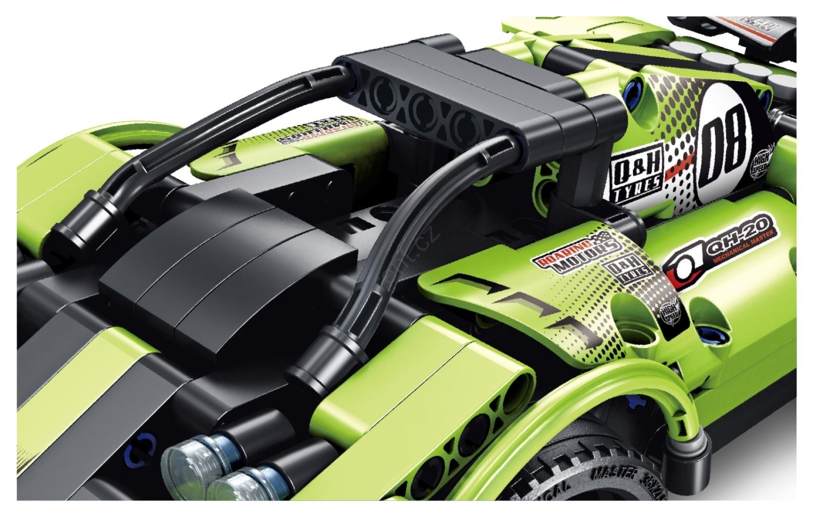 • Balení obsahuje 335 plastových dílků, ze kterých lze postavit detailní vozidlo a poté ho rozpohybovat pomocí bateriového motoru.