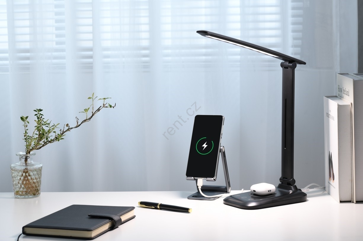 LED Stmívatelná stolní lampa s bezdrátovým nabíjením QI a USB LUMI LED/7W/230V černá