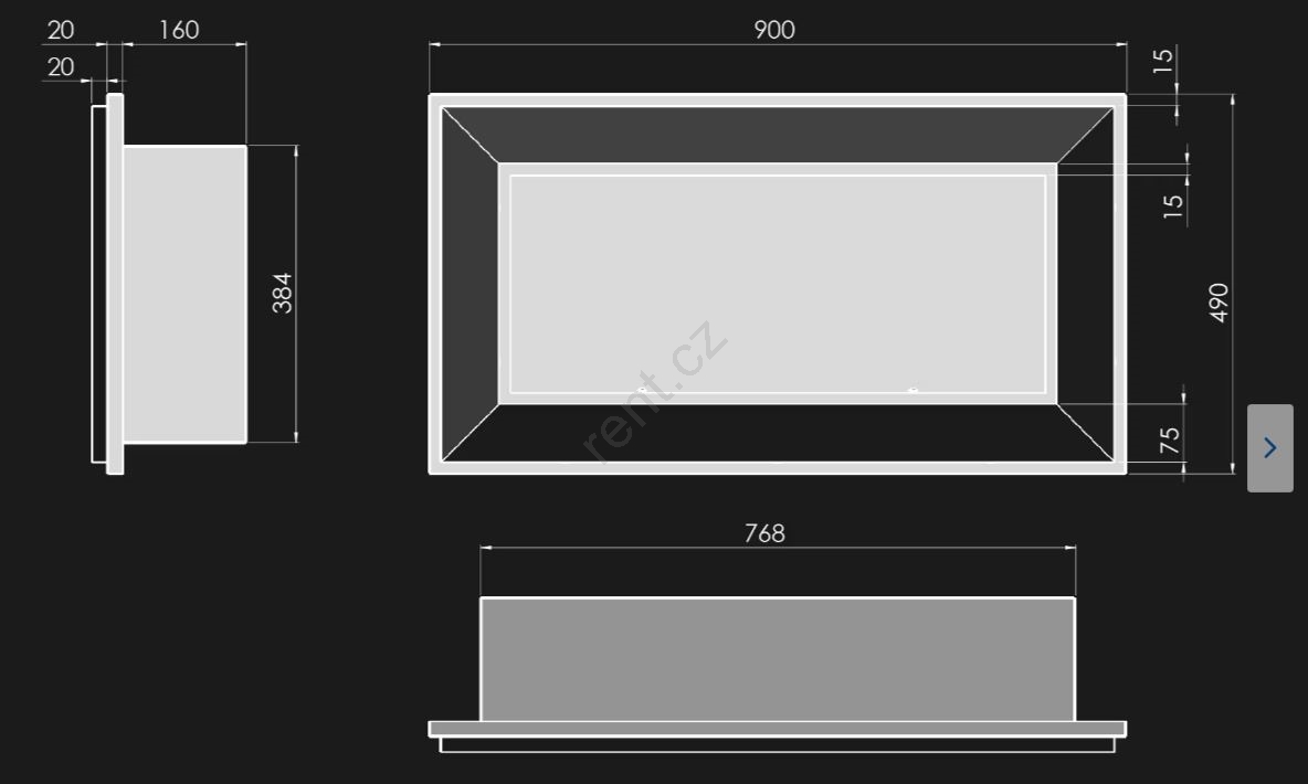 • Rozměry krbu: 49 x 90 x 20 cm.