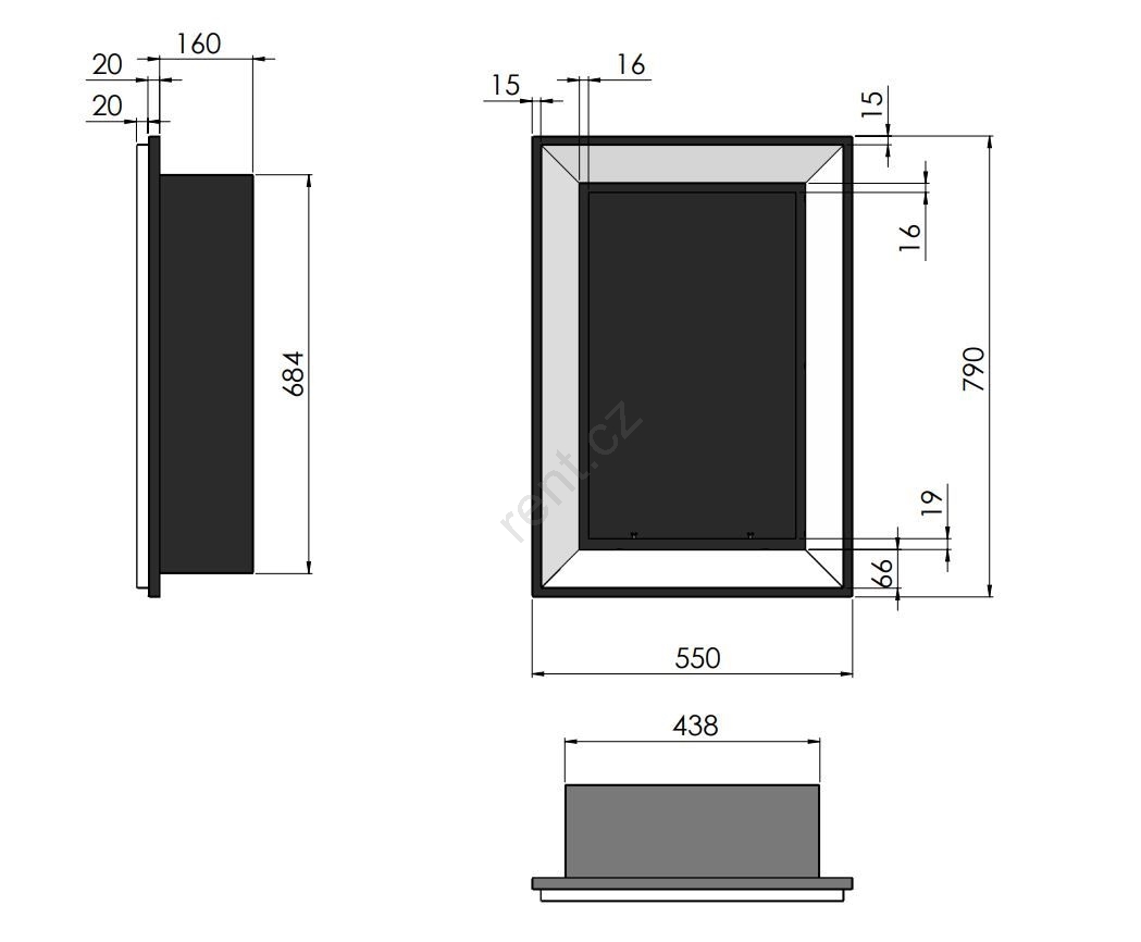• Rozměry krbu: 79 x 55 x 20 cm.