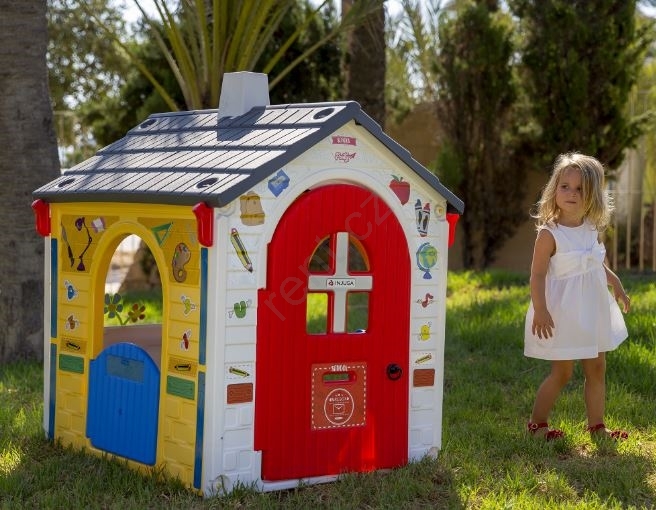 • Domek má 2 okna a 2 přístupové dveře (malé boční dveře a hlavní dveře se západkou a poštovní schránkou).